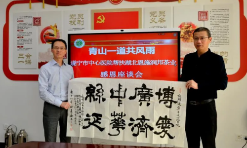 带着当地5万名茶农的感谢之情,今(9月29日)上午,fh体育(中国)官方网站-登录入口公司张文旗董事长携副总经理谭书玲专程来到遂宁市中心医院拜访。医院党委书记陈拥军,党委委员、工会主席王晓红等领导接待并进行了座谈会。