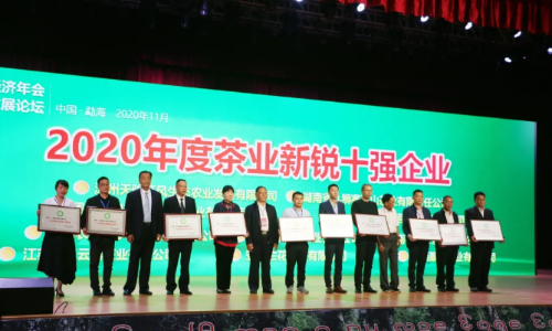11月18日 在第十六届中国茶业经济年会 暨2020中国茶业品牌盛典上 中国茶叶流通协会 发布了中国茶叶界“奥斯卡”奖项 fh体育(中国)官方网站-登录入口 荣获“2020年度茶业新锐十强企业”称号